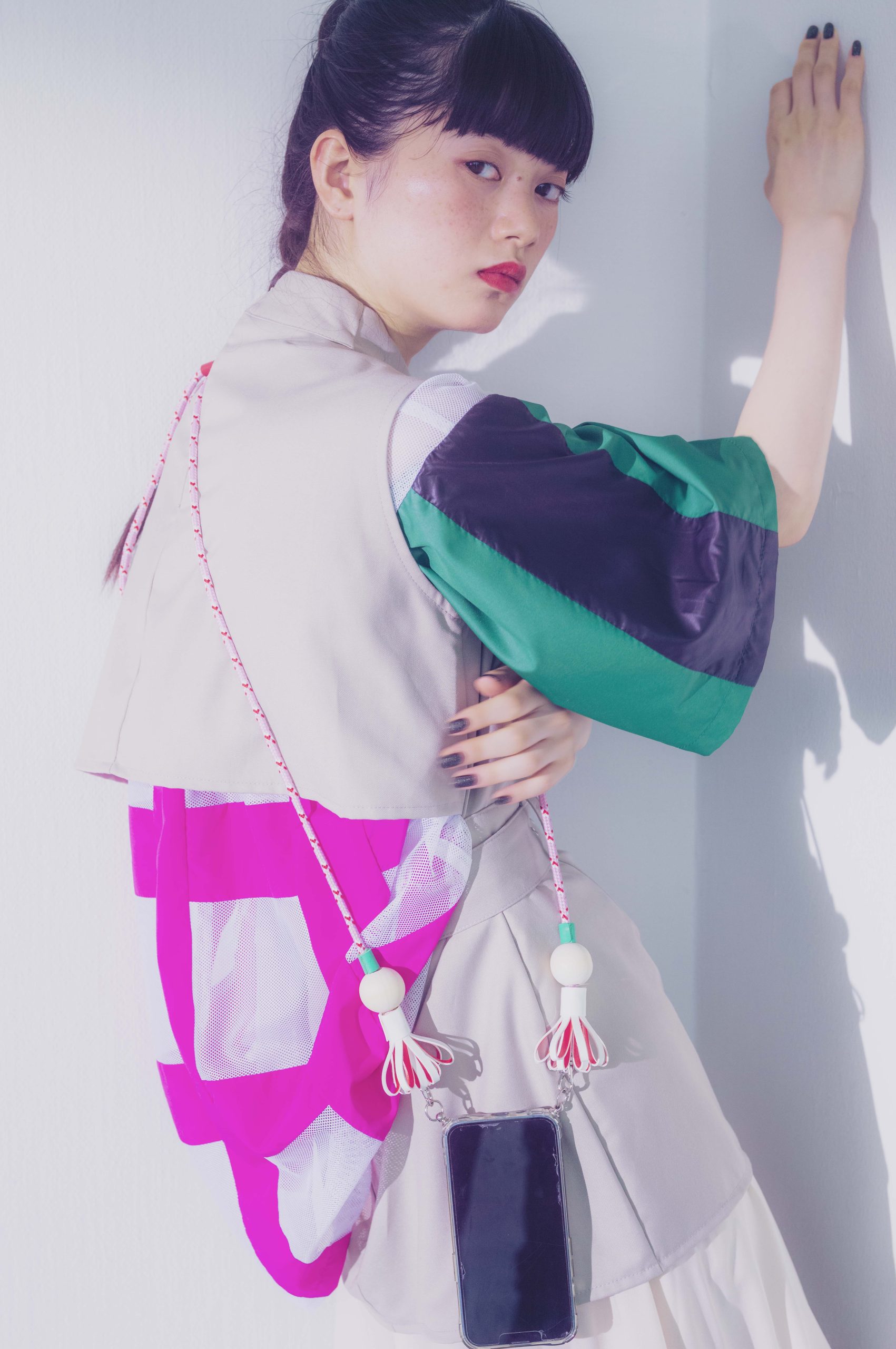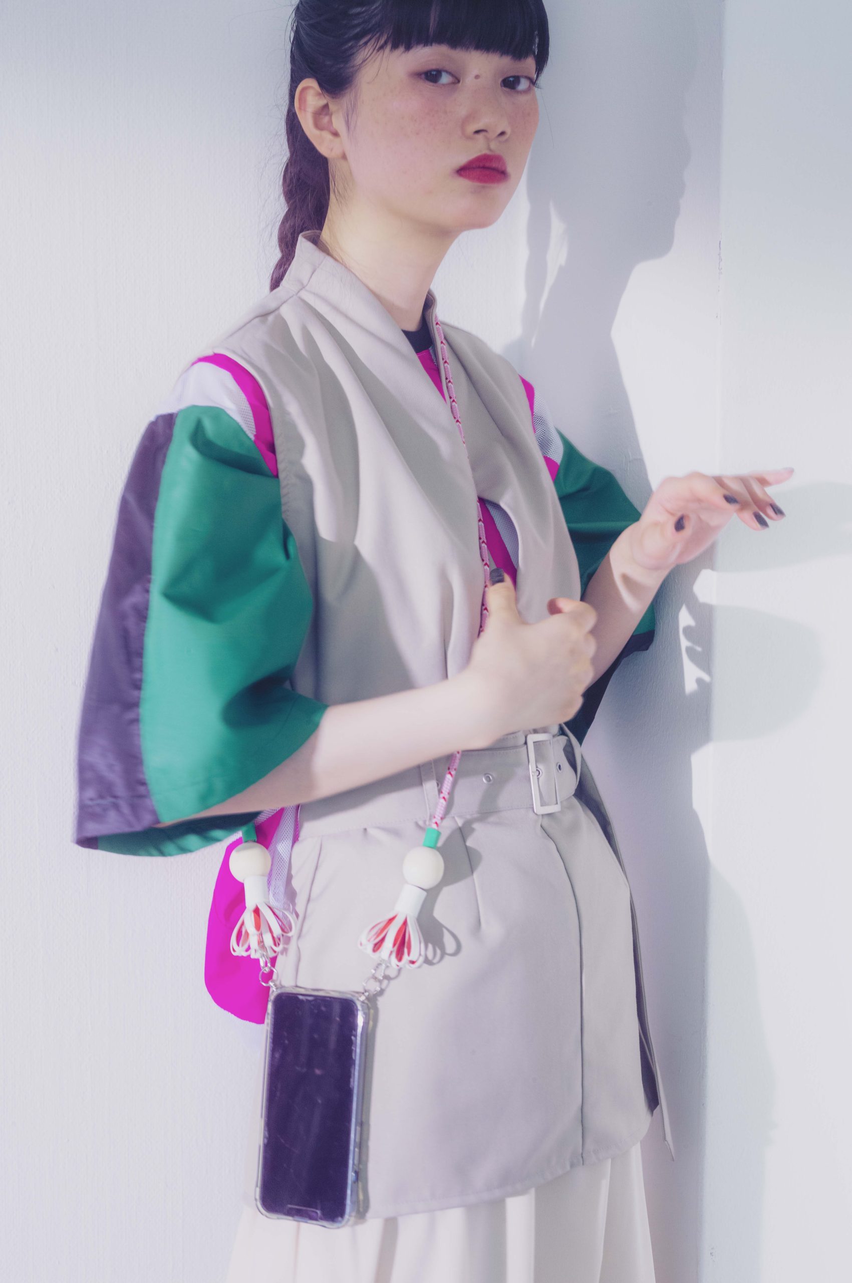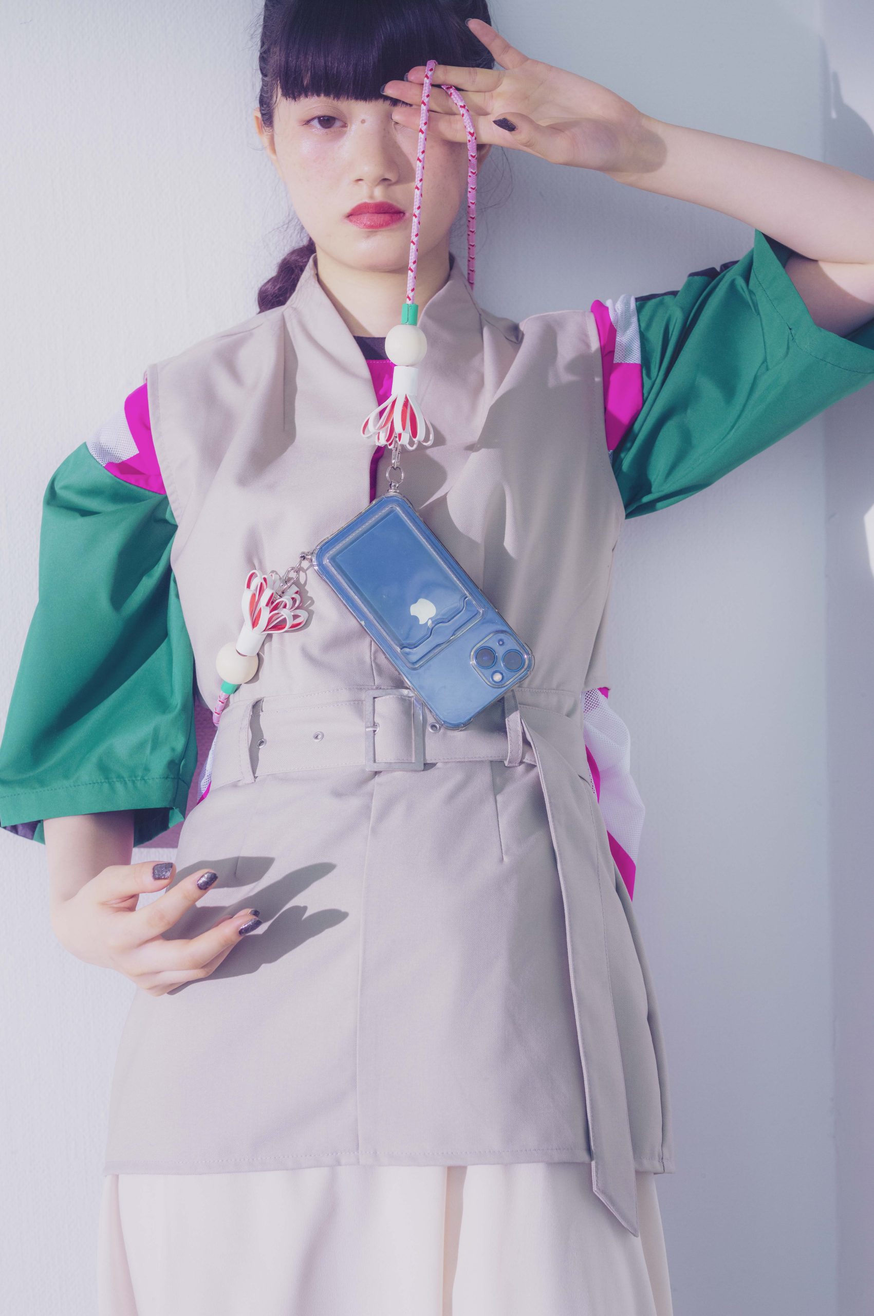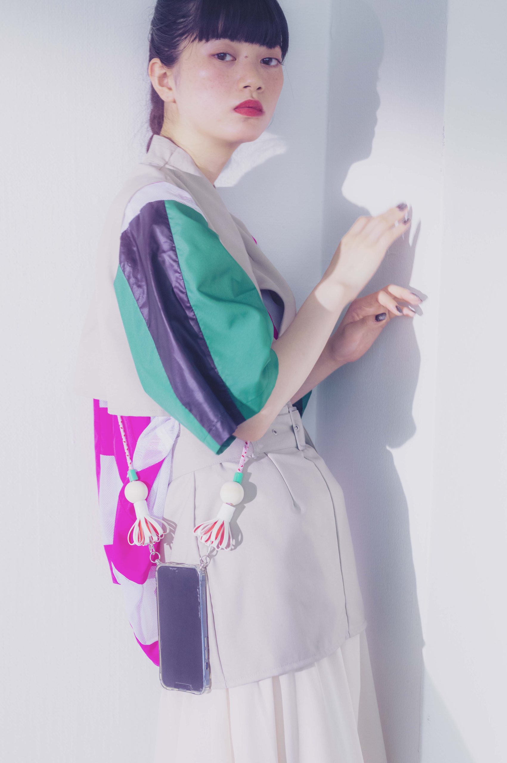 バイカラーのボンボリがアクセントに。紐の長さはたっぷり長めの150cm,紐調整でお好みの長さに。スマホストラップとしてはもちろんバッグショルダーとしてもお使いいただけます。qual:合皮エナメル、牛革、木材サイズ 長さ150cm