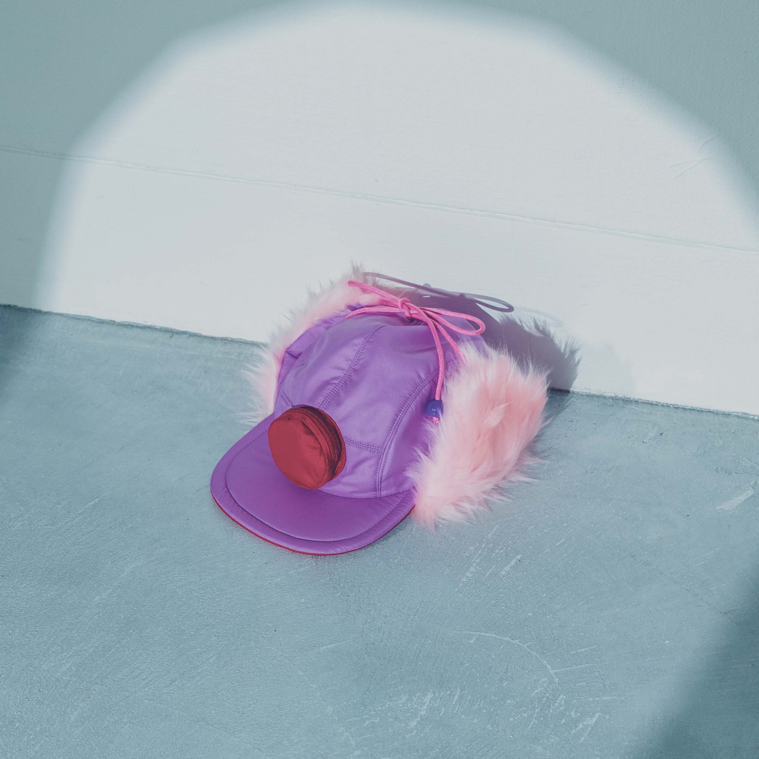 毛足の長いエコファーを使用したパネルフライトキャップ。